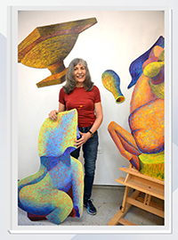 Joanna Pinsky, co-founder of Art Encounter, introduces the organization’s mission to connect people with art through education, outreach, and community projects, while also guiding us toward a richer appreciation of contemporary art. With her own works alongside pieces by other artists on hand, Joanna invites us to approach them with curiosity—asking questions, considering context and intention, and noticing choices of color, form, and materials. Through this interactive dialogue, she demonstrates how engaging with these elements can unlock meaning and make contemporary art more accessible, leaving audiences with greater confidence and appreciation.